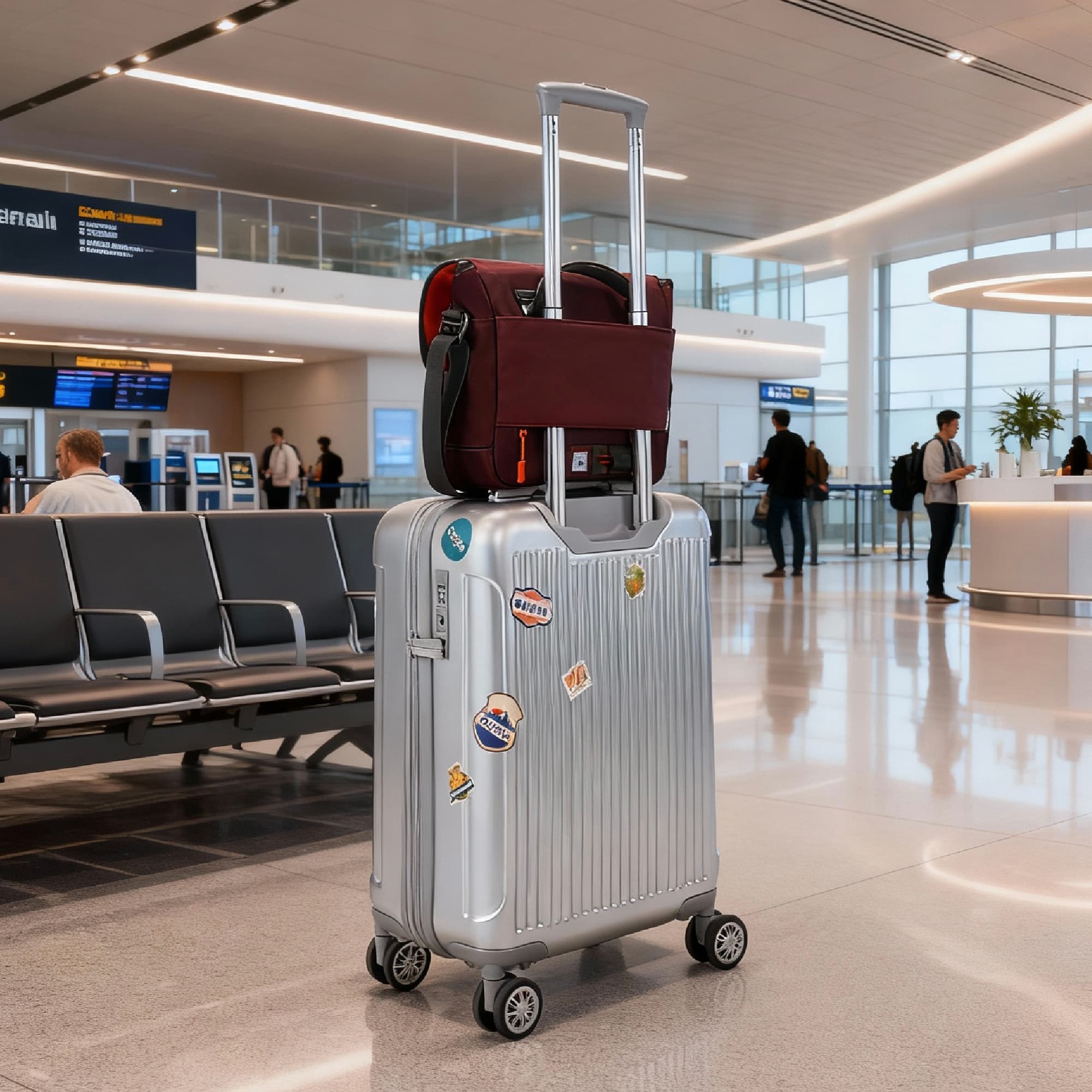 Colócalo en la barra de equipaje a través del compartimento trasero. Sus múltiples ganchos te permiten colgar objetos adicionales.