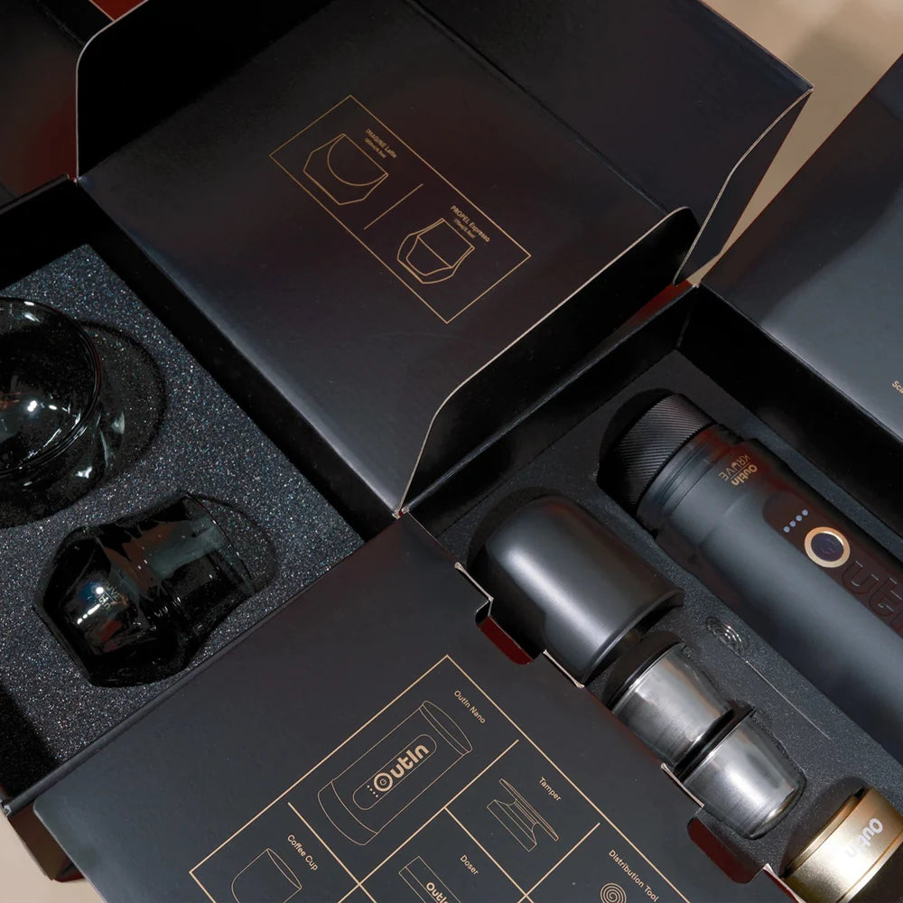 - El mejor coleccionable para los amantes del café: Este kit seleccionado combina la innovación portátil de OutIn con la experiencia en degustación de KRUVE, diseñado para quienes exigen lo mejor tanto en forma como en función.